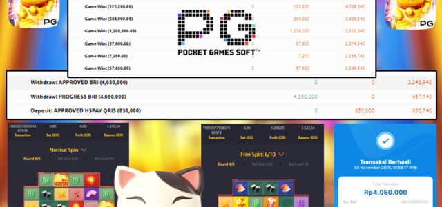 Bukti Kemenangan slot di provider PG SOFT JACKPOT LUCKY NEKO 03 NOVEMBER 2025